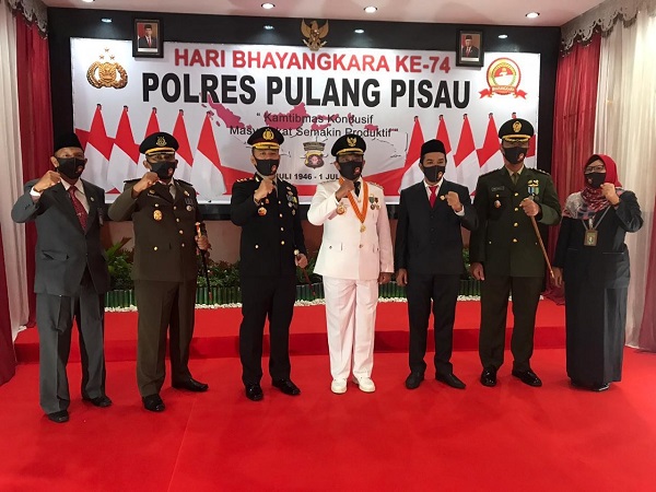 Dalam sambutannya Bupati Pulang Pisau H. Edy Pratowo bersama unsur ForumKoordinasi Pimpinan Daerah (FORKOPIMDA) mengucapkan hari jadi Bhayangkara ke-74. Diharapkan semua pimpinan lembaga pemerintahan yang ada di daerah ini bisa mengatasi bersama-sama berbagai kendala yang sedang maupun yang akan dihadapi oleh kabupaten setempat.