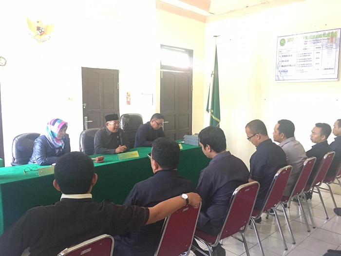 Rabu (04/12/2019) pukul 09.00 WIB KPTA Palangka Raya Drs. H. Shofrowi, S.H., M.H. didampingi Kabag Umum dan Keuangan Mauliannor, S. Ag. berkunjung ke PA Pulang Pisau. Kunjungan beliau disambut dengan hangat oleh KPA Pulang Pisau Sri Roslinda, S. Ag., M.H. dan seluruh jajarannya. Setelah mengisi buku tamu Beliaupun berkeliling masuk ke setiap ruangan dan beramah tamah dengan seluruh pegawai. Setelah itu KPTA melakukan pembinaan di ruang sidang PA Pulang Pisau.