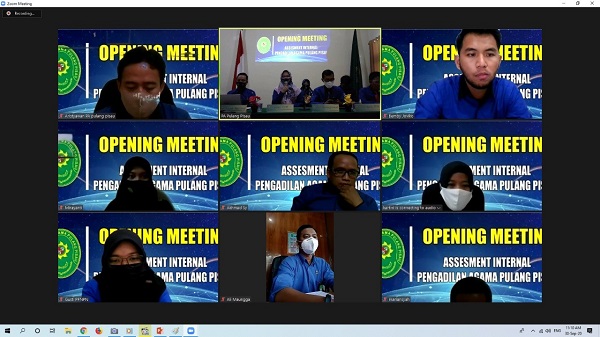 Rabu, 30 September 2020, pukul 10.00 WIB. Pengadilan Agama Pulang Pisau mengadakan acara Opening Meeting Assesment Internal Akreditasi Penjaminan Mutu (APM). Bertempat di ruang sidang Pengadilan Agama Pulang Pisau, acara Opening Meeting Assesment Internal dilaksanakan dengan memperhatikan prusedur kesehatan Covid-19 yaitu dilangsungkan secara virtual melalui Aplikasi Zoom, dengan di ikuti oleh seluruh aparatur Pengadilan Agama Pulang Pisau beserta jajaranya.