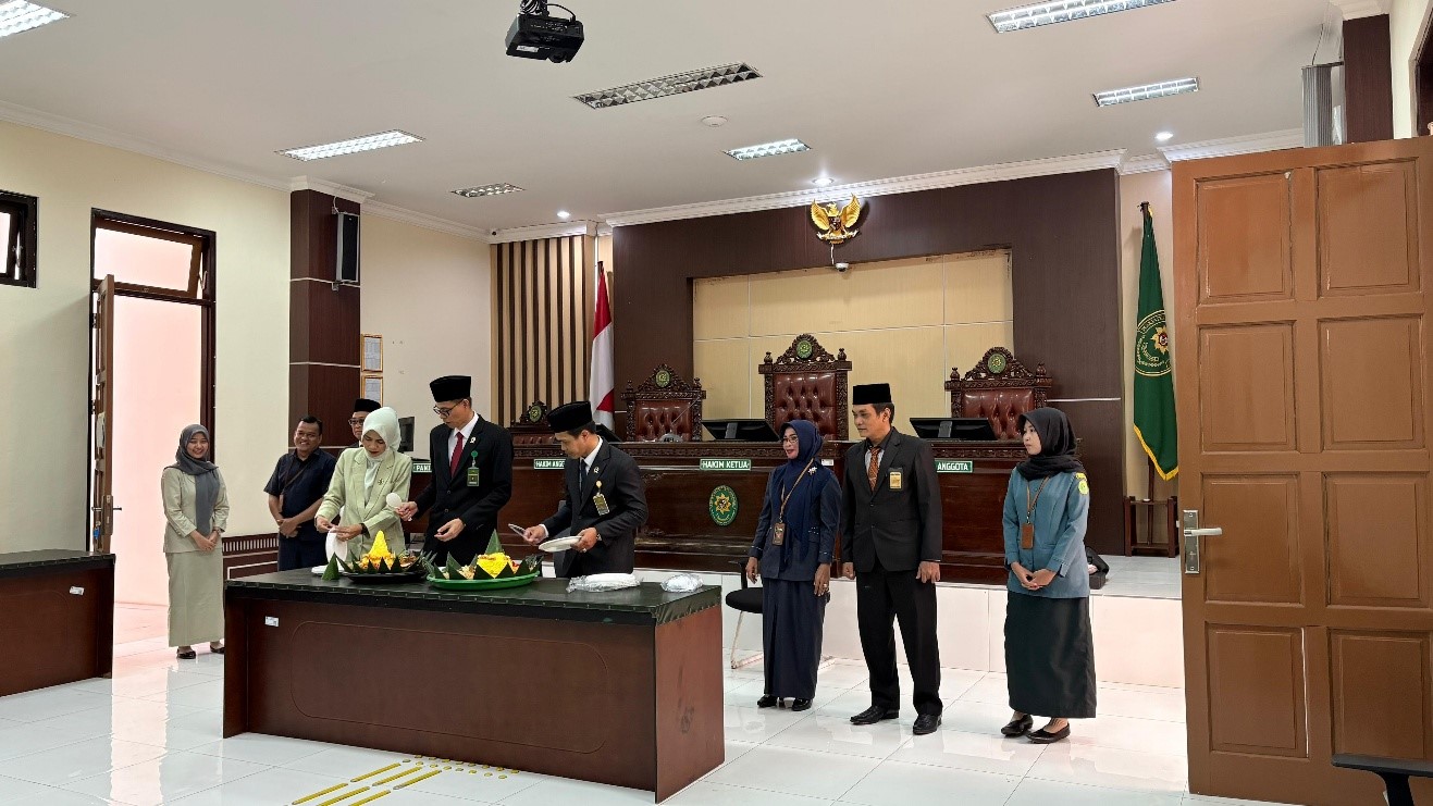 Acara kemudian dilanjutkan dengan pemotongan tumpeng oleh pimpinan sebagai simbol rasa syukur atas perjalanan panjang Mahkamah Agung dalam mengawal tegaknya hukum dan keadilan di Indonesia. Prosesi ini berlangsung khidmat dan penuh makna. Potongan pertama diserahkan kepada aparatur senior sebagai bentuk penghargaan atas dedikasi dan pengabdian yang telah diberikan. Potongan kedua diberikan kepada aparatur termuda sebagai simbol harapan estafet perjuangan dan semangat baru. Sementara itu, potongan ketiga diserahkan kepada salah satu tokoh yang berperan penting dalam pembangunan Pengadilan Agama Pulang Pisau, sebagai wujud penghormatan terhadap jasa dan sejarah berdirinya lembaga peradilan tersebut.