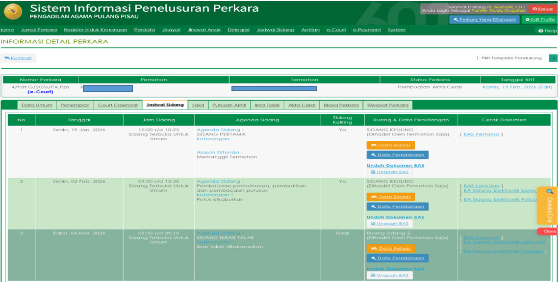 Pulang Pisau – Komitmen terhadap transparansi dan akurasi data perkara terus diperkuat oleh jajaran kepaniteraan. Panitera Muda Gugatan, ibu Hj. Norbaiti, S.H.I yang bertindak sebagai Panitera Pengganti (PP), secara sigap melakukan penginputan data dan dokumen hasil persidangan pengucapan ikrar talak dalam perkara Cerai Talak ke dalam aplikasi SIPP (Sistem Informasi Penelusuran Perkara), Rabu tanggal 4 Maret 2026.