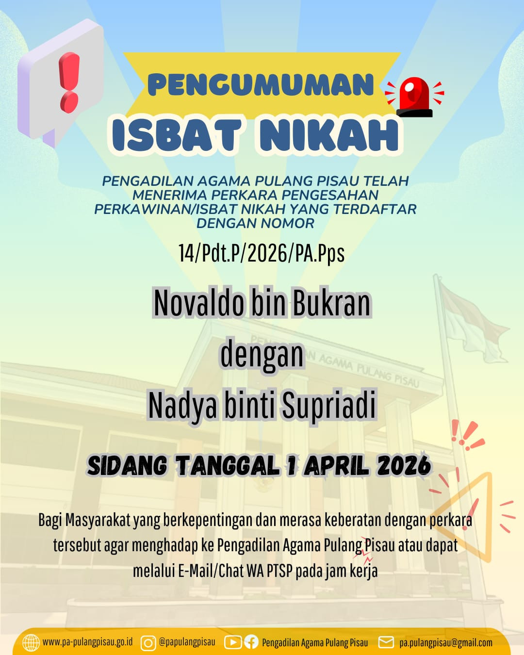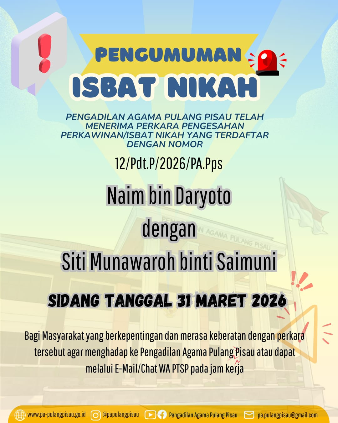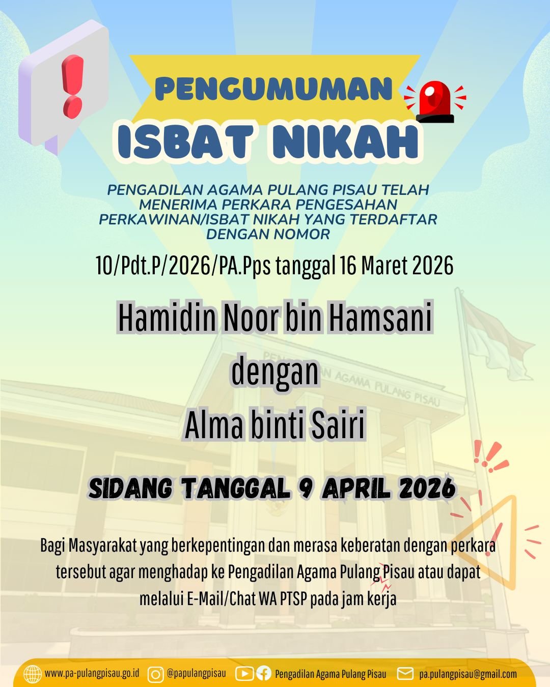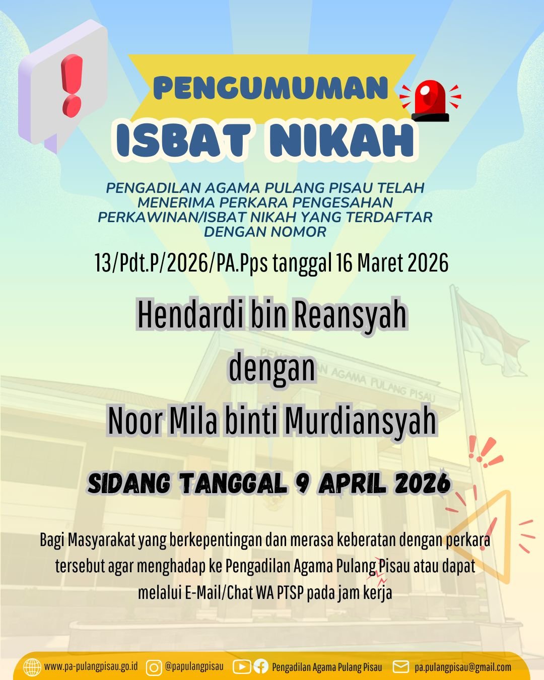 Pulang Pisau, 17 Maret 2026 — Pengisian Electronic Track Record (ETR) Triwulan I Tahun 2026 dilaksanakan oleh seluruh pegawai di Pengadilan Agama Pulang Pisau sebagai bagian dari upaya penilaian dan pemantauan kinerja aparatur peradilan. Kegiatan ini bertujuan untuk menilai serta mendokumentasikan berbagai aktivitas dan capaian kerja pegawai selama periode Januari hingga Maret 2026. Melalui sistem ETR, setiap pegawai diwajibkan menginput laporan kegiatan, tugas yang telah dilaksanakan, serta kontribusi dalam mendukung pelaksanaan tugas dan fungsi lembaga peradilan.