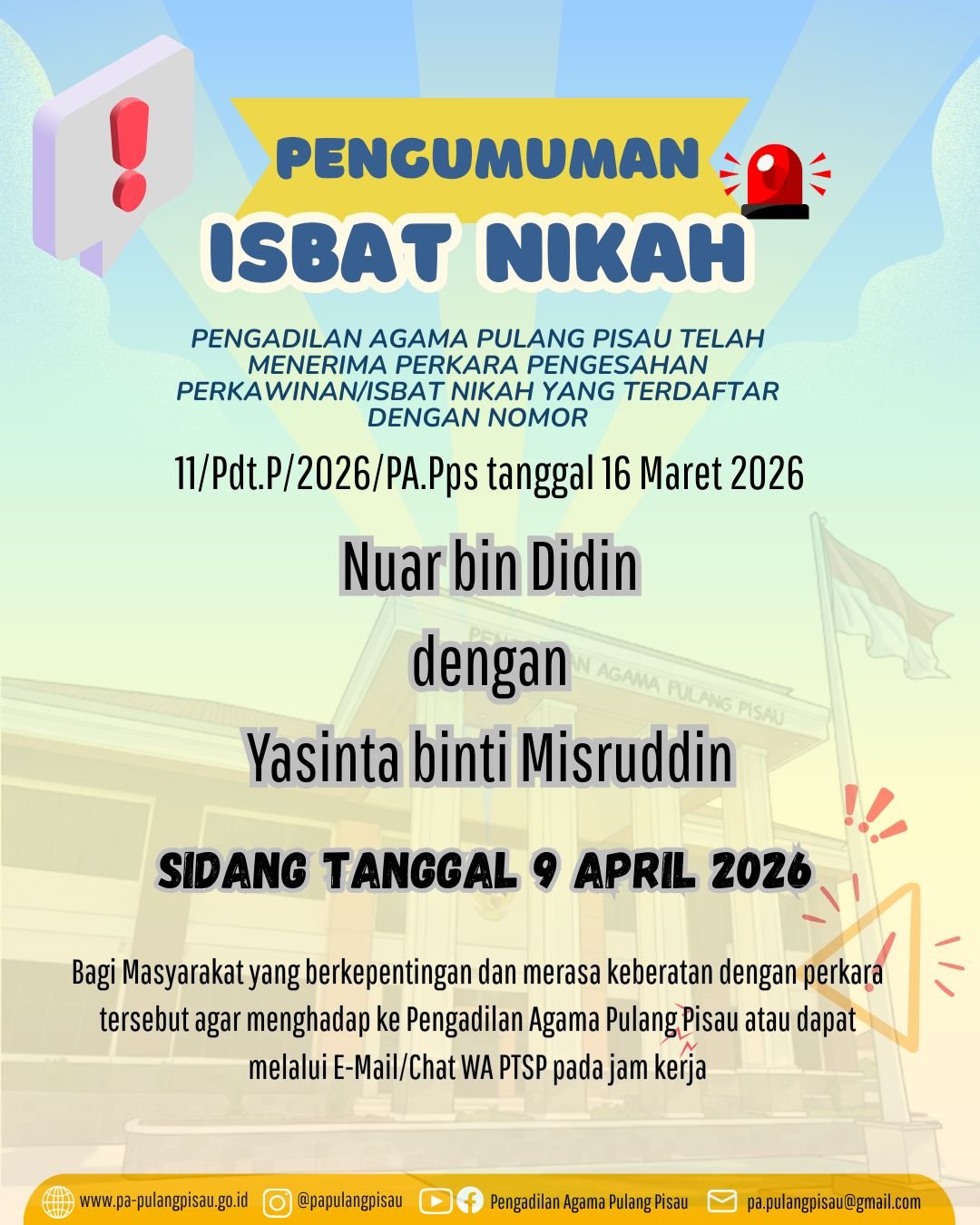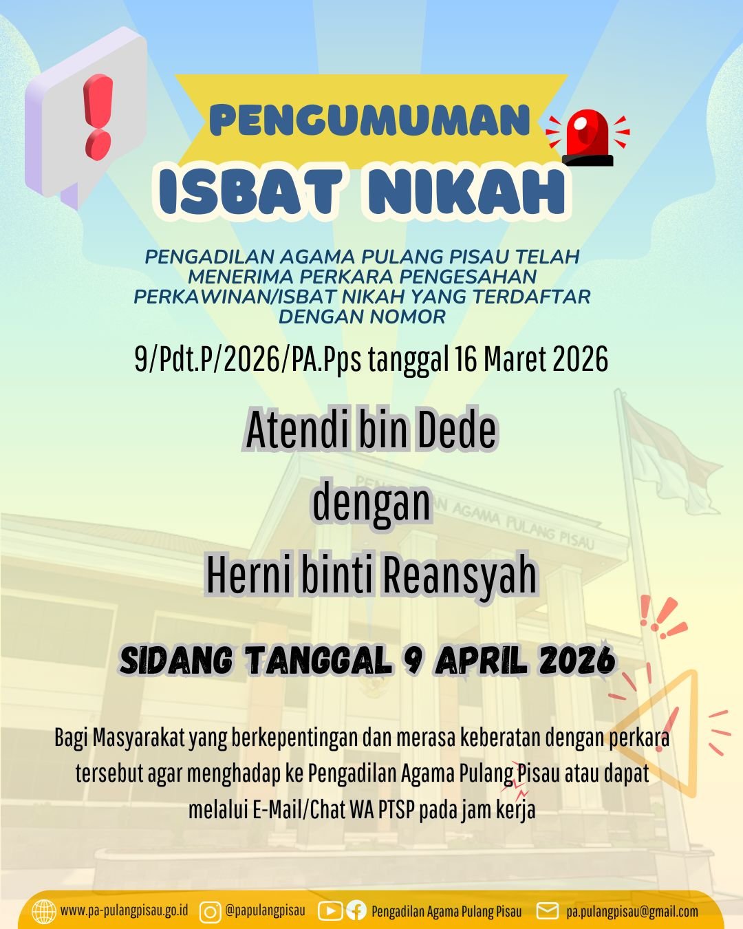 Data yang tercatat dalam ETR nantinya akan menjadi bahan evaluasi bagi pimpinan dalam menilai kinerja seluruh pegawai di lingkungan Pengadilan Agama Pulang Pisau. Selain itu, pengisian ETR juga diharapkan dapat meningkatkan transparansi, akuntabilitas, serta kedisiplinan pegawai dalam melaksanakan tugas. Dengan pelaporan kinerja yang terstruktur dan berbasis sistem elektronik ini, diharapkan kualitas pelayanan kepada masyarakat dapat terus meningkat sejalan dengan komitmen lembaga peradilan dalam mewujudkan tata kelola pemerintahan yang baik.