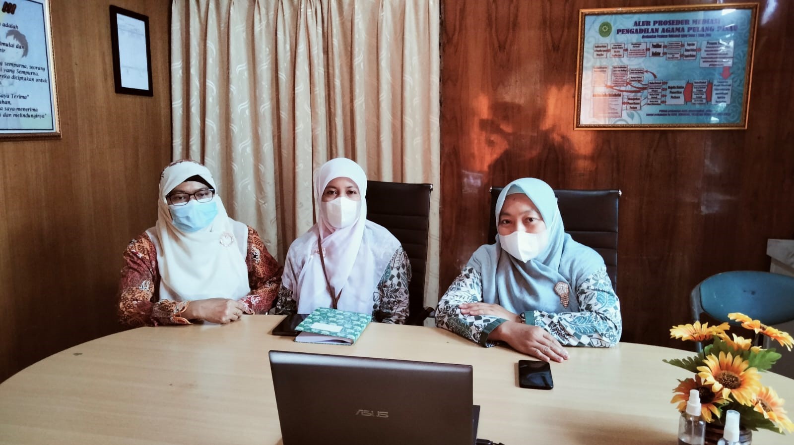 Pulang Pisau, Jum’at 17 September 2021. Dilaksanakan di ruang mediasi kantor Pengadilan Agama Pulang Pisau, Pengurus Dharmayukti Karini Cabang Pulang Pisau mengikuti acara Pamitan Pelindung dan Ketua Dharmayukti Karini Daerah Kalimantan Tengah secara Virtual melalui zoom meeting yang dilaksanakan pada pukul 14.00 WIB. Yang berpartisipasi dalam acara tersebut dari Dharmayukti Karini Cabang Pulang Pisau adalah Ny. Mimin Erpan selaku Ketua Cabang DYK Pulang Pisau, beserta Ny. Hj. Norbaiti dan Ny. Kartini selaku pengurus.