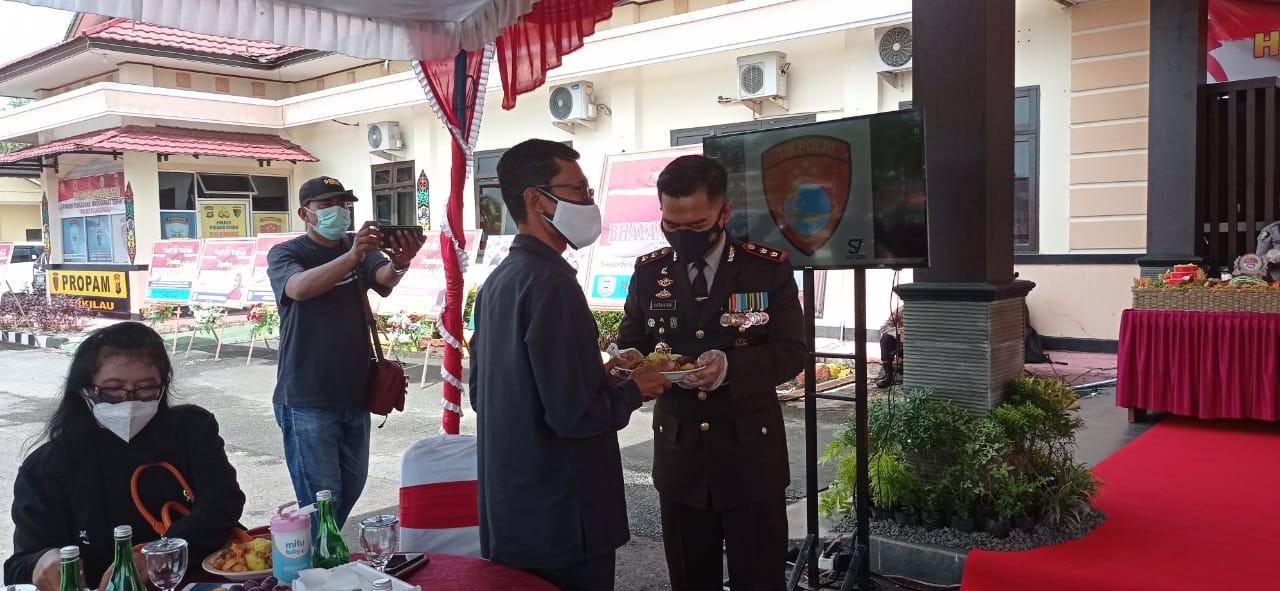 Usai kegiatan upacara Hari Bhayangkara Ke – 75 dilaksanakan secara virtual Ketua Pengadilan Agama Pulang Pisau Erpan, S.H., M.H. selanjutnya acara tasyakuran yang dilaksanakan di Halaman kantor Polres Pulang Pisau, Kamis (01/07/2021) Pukul 10.00 WIB. Rangkaian kegiatan syukuran ini dilaksanakan dengan sederhana dengan tetap menerapkan portokol kesehatan ketat dengan pemberian penghargaan kepada personil yang berprestasi, pemberian penghargaan kepada pemenang lomba kerajinan, UMKM dan Posko PPKM