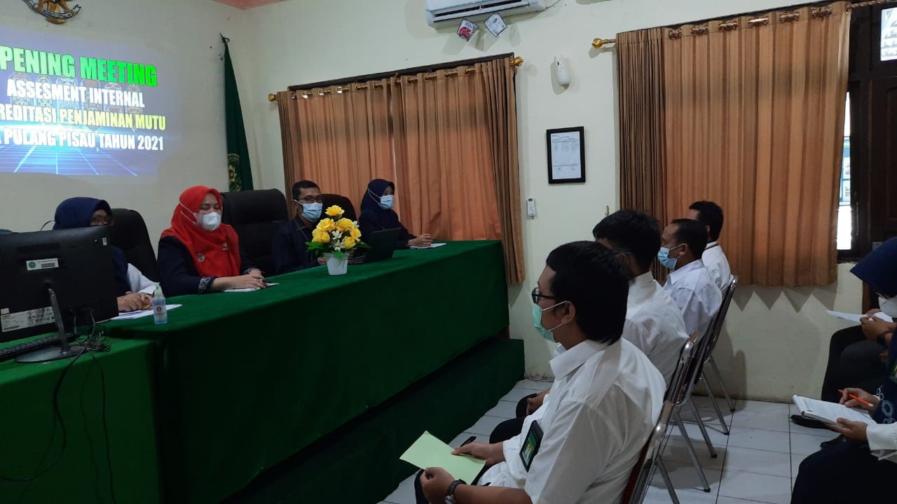 Opening meeting Asessment Internal Akreditasi Penjaminan Mutu (APM) di isi dengan sambutan oleh Ketua Pengadilan Agama Pulang Pisau, Erpan, S.H.,M.H. Dalam sambutan yang di sampaikan Ketua Pengadilan Agama Pulang Pisau resmi membuka pelaksanaan Asessment Internal Akreditasi Penjaminan Mutu tahun 2021. Dengan dibukanya Opening Meeting Asessment Internal, Ketua Pengadian Agama Pulang Pisau yang juga selaku Top Manajemen mengharapkan selama kegiatan Asessment Internal harus dipastikan agar tetap menjaga stamina dan kesehatan tubuh serta menjaga kesolidaritasan kerja dengan tidak lupa bahwa tugas serta fungsi Pengadilan Agama dalam melayani masyarakat agar tetap berjalan lancar. kegiatan pelaksanaan Asessment Internal Akreditasi Penjaminan Mutu (APM) Pengadilan Agama Pulang Pisau Tahun 2021 akan dilaksanakan mulai hari Senin s/d Rabu (02 s/d 03 Agustus 2021).