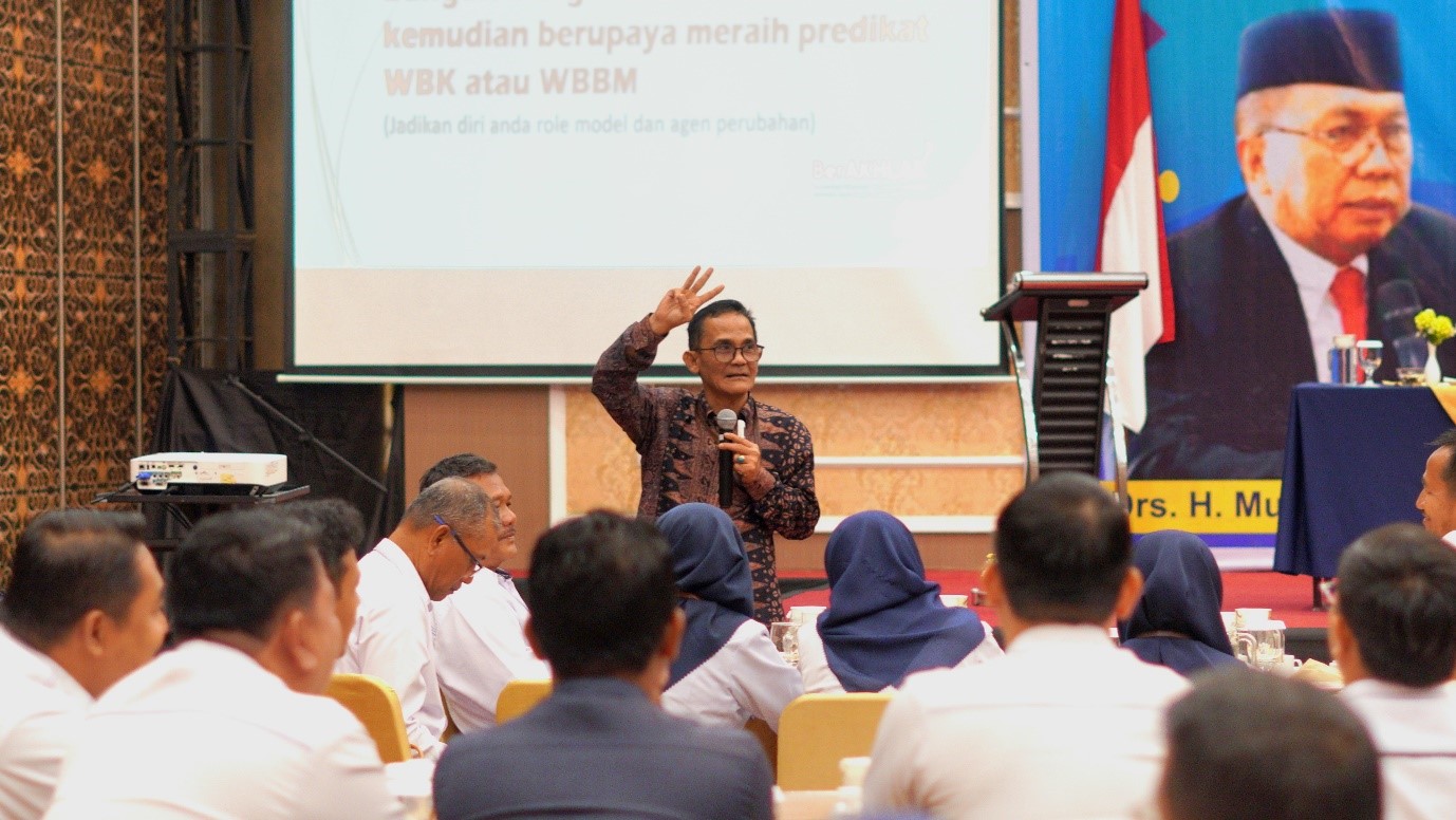 Senin, 22 Juli 2024. Pukul 10.00 WIB bertempat di Aula Seruyan 2 Hotel Bahalap, Palangka Raya, Pegawai Pengadilan Agama Pulang Pisau yang terdiri dari Ketua Wiryawan Arif, S.H.I., M.H., Hakim Rahmatiah, S.Sy., Panitera H. Mariansyah Noor, S.Ag, Sekretaris Yondri Harta, S.E., Panitera Muda Gugatan Kartini, S.H.I., Panitera Muda Permohonan Hj. Norbaiti, S.H.I., dan Petugas IT Sauni, S.Kom., menyimak dengan seksama pembinaan dari Sekretaris Direktur Jenderal Badan Peradilan Agama Bapak Drs. Arief Hidayat, S.H., M.M., yang menyampaikan materi tentang Pembangunan Zona Integritas Wilayah Bebas dari Korupsi (WBK) dan dapat menuju Wilayah Birokrasi Bersih dan Melayani (WBBM).
