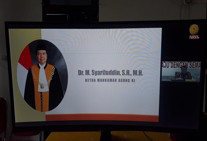 Ketua Mahkamah Agung RI. DR. H. Muhammad Syarifuddin,S.H.M.H. menyampaikan bahwa di tahun 2020 ini negara Indonesia sedang di landa pandemic Covid -19. Namun Mahkamah Agung terus berusaha melakukan terobosan untuk tetap dapat mewujudkan peradilan yang cepat dan mudah bagi masyarakat pencari keadilan.