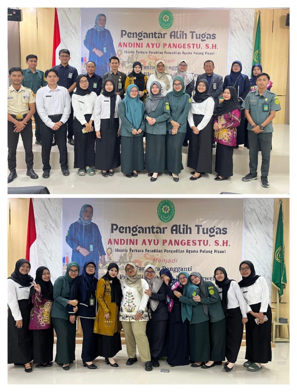 Kemudian, pada hari Rabu, tanggal 04 Juni 2025, pukul 13.30 WIB Pengadilan Agama Pulang melaksanakan kegiatan Pengantar Alih Tugas Analis Perkara Peradilan PA Pulang Pisau Andini Ayu Pangestu, S.H. yang mendapatkan promosi menjadi Panitera Pengganti pada Pengadilan Agama Muara Teweh di Kabupaten Barito Utara. Kegiatan tersebut berlangsung dengan khidmat dan rasa sedih karena akan berpisah dengan sosok Pegawai yang telah mengabdi di PA Pulang Pisau selama kurang lebih 4 (empat) tahun 5 (lima) bulan dengan penuh kedisiplinan dan tanggung jawab. Tidak cukup hanya dengan acara Pengantar Alih Tugas, Ketua, Hakim dan beberapa Pegawai PA Pulang Pisau mengantarkan Andini menuju Kabupaten Barito Utara pada hari Minggu tanggal 08 Juni 2025 melalui jalur darat dengan menempuh perjalanan kurang lebih 12 (dua belas) jam.