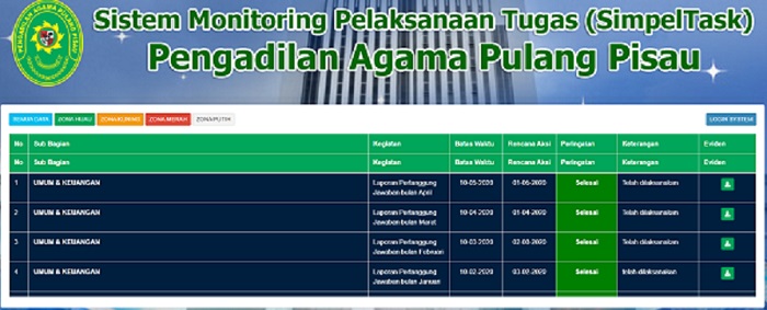 YM. Waka PTA Palangka Raya melihat aplikasi SimpelTask pada daftar aplikasi Badilag yang telah diterapkan di Satker PA Pulang Pisau. Lalu beliau pun bertanya kepada Bapak Syahida sebagai Kasubbag Umum dan Keuangan dan setelah itu beliau ingin mengetahui detail tentang aplikasi SimpelTask yang merupakan Inovasi yang telah diterapkan di PA Pulang Pisau.