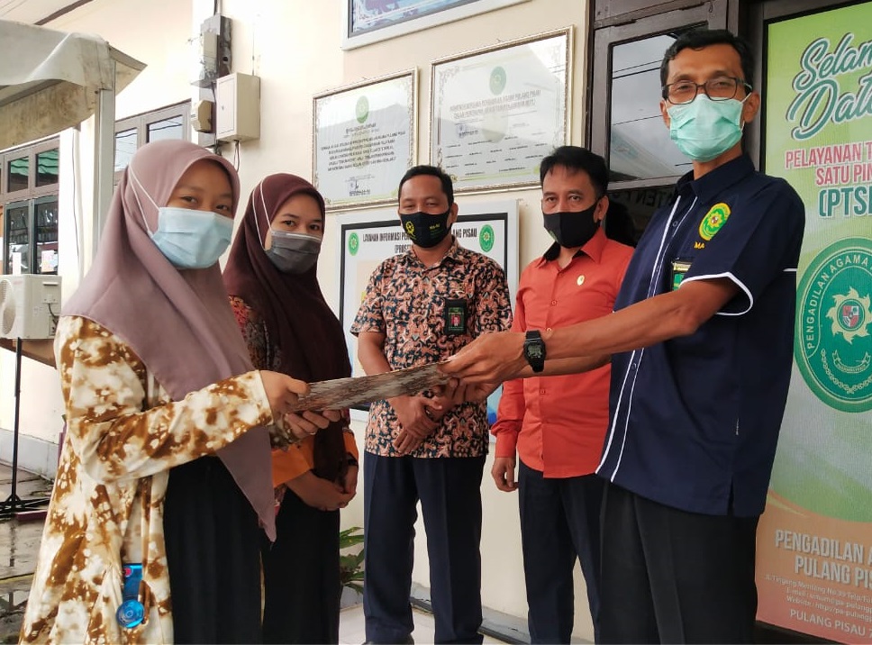 Kamis tanggal 1 Oktober 2020 Pengadilan Agama Pulang Pisau kedatangan dua orang siswa SMK Negeri 1 Kahayan Hilir untuk melaksanakan Praktek Kerja Lapangan di Pengadilan Agama Pulang Pisau. Mereka masing-masing bernama Rabiatul Adawiyah dan Santia. Kegiatan tersebut berlangsung selama kurang lebih tiga (3) bulan. Dalam pelaksanaanya mereka ditempatkan di bagian kesekreteriatan Pengadilan Agama Pulang Pisau dengan jenis kegiatan yang mereka kerjakakan berkaitan dengan bidang kearsipan, teknologi perkantoran, dan komputer administrasi. Adapun uraian pekerjaan diantaranya adalah: pengecekan kelengkapan dokumen pegawai, penemuan kembali arsip, penggandaan dokumen, pemindaian dokumen, pembuatan surat cuti dan surat mutasi serta penginputan data.