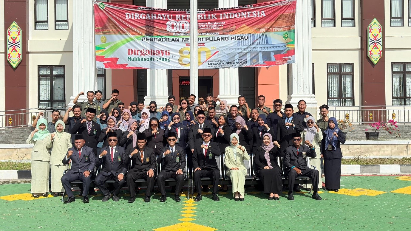 Selasa, 19 Agustus 2025 pukul 08.00 WIB di bawah terik sinar matahari bertempat di halaman kantor Pengadilan Negeri Pulang Pisau, Ketua serta para Pengurus Dharmayukti Karini Cabang Pulang Pisau dengan penuh semangat dan antusias turut serta dalam kegiatan Apel Upacara Hari Ulang Tahun Mahkamah Agung Republik Indonesia (HUT MA-RI) Ke – 80 tahun 2025 dengan tema “Peradilan Bermartabat, Negara Berdaulat”, dengan mengenakan seragam Blazer Dharmayukti Karini.