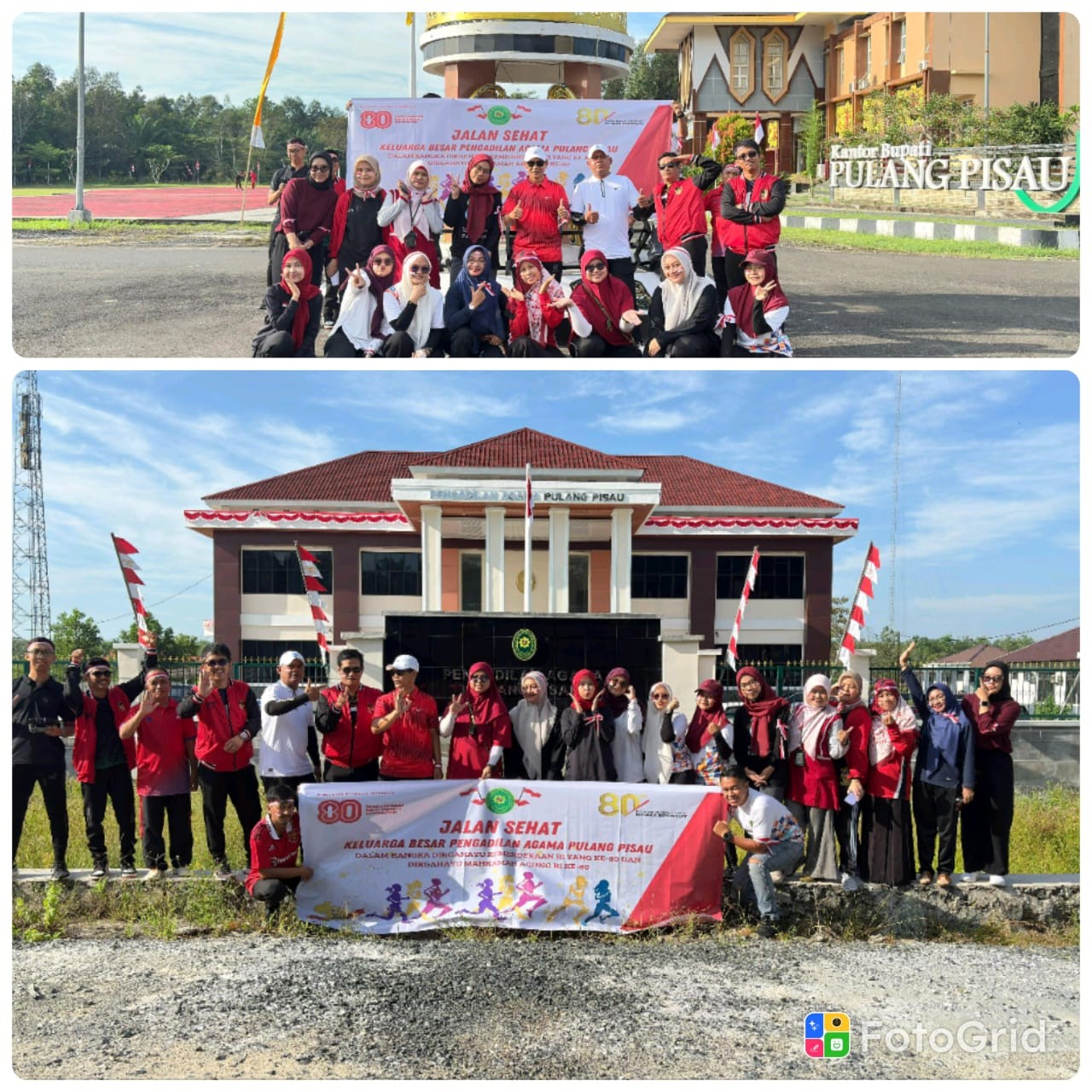 Masih pada hari Kamis, Kasub Umum dan Keuangan PA Pulang Pisau Ahmad Syahida, S.H. menghadiri kegiatan Vicon Kick Off Gerakan Pangan Murah di Polres Pulang Pisau. Kemudian pada hari Jumat, 15 Agustus 2025 dalam rangka memeriahkan HUT RI ke 80 dan HUT MA-RI PA Pulang Pisau melaksanakan kegiatan jalan sehat yang rutenya dimulai dari kantor PA Pulang Pisau kemudian menuju Kantor Bupati Pulang Pisau di tengah terik matahari pagi. Usai kegiatan jalan sehat, dilanjutkan dengan kegiatan Lomba Sepakbola menggunakan sarung, lomba estafet kelereng dan lomba estafet memasukkan air kedalam botol. Pekan kedua di bulan Agustus tersebut ditutup dengan kegiatan apel Jumat sore di halaman kantor PA Pulang Pisau dengan Wiryawan Arif, S.H.I, M.H. sebagai Pembina Apel.