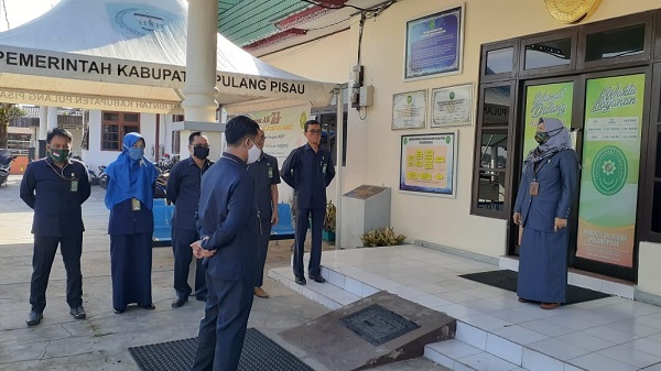 Senin, 27 Juli 2020 Pukul 08.00 WIB, Pengadilan Agama Pulang Pisau kembali melaksanakan apel pagi bertempat di halaman kantor PA Pulang Pisau Jalan Tingang Menteng Nomor 51. Apel yang diikuti seluruh aparatur Pengadilan Agama Pulang Pisau yang terdiri dari seluruh Hakim, Pejabat Struktural, Pejabat Fungsional, para Staff, dan Tenaga Honorer PA Pulang Pisau ini dilaksanakan dengan tetap mematuhi protokol kesehatan yaitu dengan memakai masker. Bertindak sebagai petugas apel yaitu Ali Maungga, S.H sebagai komandan, Mirayanti, S.H sebagai pembawa acara dan Kartini, S.Pd. sebagai pembaca doa.