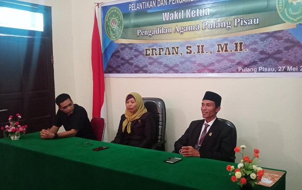 Selanjutnya dengan datangnya Surat Keputusan Ketua Mahkamah Agung Republik Indonesia Nomor 74/KMA/SK/IV/2019, tanggal 25 April 2019, Tentang Promosi dan Mutasi Ketua, Wakil Ketua dan Hakim pada Lingkungan Peradilan Agama maka acara pelantikan Beliau pun digelar pada hari Senin (27/05/2019) pukul 14.00 WIB dengan dihadiri oleh Ketua dan Wakil Ketua Pengadilan Negeri. Pihak Kementerian Agama serta diikuti oleh Para Hakim, Panitera, Sekretaris, Pejabat Struktural, Pejabat Fungsional, Staf dan PPnPNS PA Pulang Pisau.