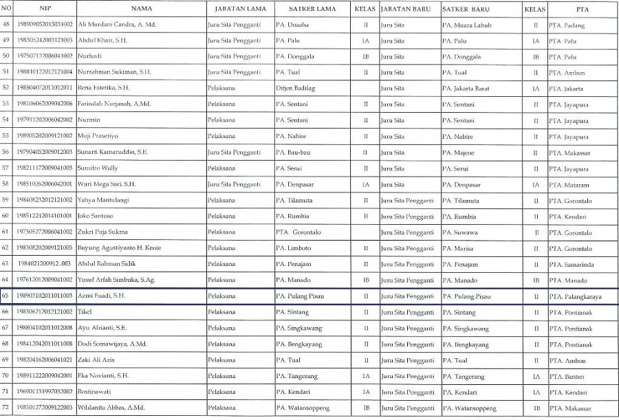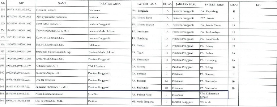 Sementara itu pada TPM ini tertulis pula nama H.Muhammad sidik, S.H. sebagai Panitera baru PA Pulang Pisau, sebelumnya Ia adalah Panitera di PA Buntok. Adapula nama Hj. Norbaiti, S.H.I. sebagai Panitera Pengganti di PA Pulang Pisau yang sebelumnya merupakan Pelaksana di PA Palangka Raya.