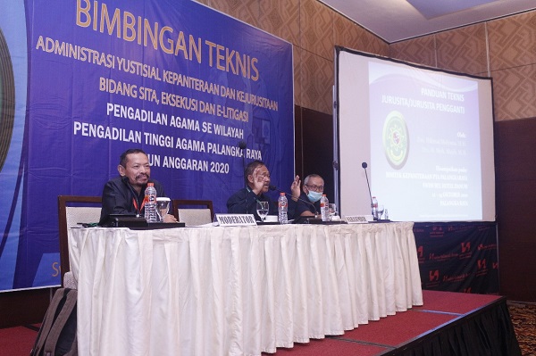 Setelah acara resmi dibuka, bidang Kepaniteraan melanjutkan dengan kegiatan berikutnya dengan Sub tema ADMINISTRASI YUSTISIAL KEPANITERAAN DAN KEJURUSITAAN BIDANG SITA, EKSEKUSI DAN E-LITIGASI. Materi pada hari pertama adalah mengenai Panggilan/Pemberitahuan dan permasalahannya dengan Narasumber Drs. Hikmat Mulyana, M.H. dan Drs. Moh. Mujib, M.H., keduanya adalah Hakim Tinggi PTA Palangka Raya. Dalam materinya, pemateri menerangkan dan mengingatkan kembali mengenai Kode Etik Jurusita kepada para peserta. Dasar Hukumnya termuat dalam SK KMA 122/KMA/SK/VII/2013 tentang Kode etik dan pedoman perilaku Panitera dan Jurusita, kode etik tersebut wajib dipedomani oleh setiap Jurusita/JSP dalam melaksanakan tugas peradilan. Sikap/perilaku JS/JSP dalam menjalankan tugas, wajib melayani masyarakat dengan bersikap sopan, teliti, tidak membeda-bedakan orang, dilarang memberi kesan memihak kepada salah satu pihak, dilarang mewakilkan kepada siapapun penyampaian relaas panggilan maupun pemberitahuan, dilarang menjadi penasehat hukum baik langsung atau tidak langsung, dan dilarang memasuki tempat perjudian, prostitusi, bar kecuali dalam melaksanakan tugas. Jurusita/JSP dalam kedianasan wajib mentaati dan meningkatkan 3 tertib, yaitu tertib Administrasi, tertib perkantoran, dan tertib jam kerja.