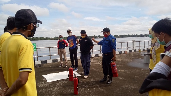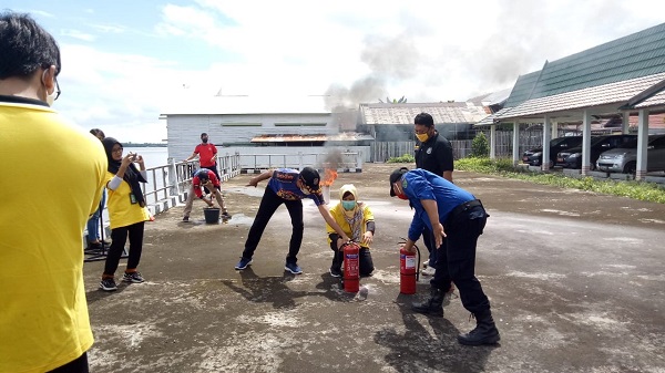 Petugas menyampaikan informasi mengenai jenis APAR (Alat Pemadam Api Ringan) yang tersedia yaitu : APAR isi Powder, APAR isi Gas CO2, APAR isi Foam, APAR isi Air, APAR isi Holan APAR isi Gas CO2. Penggunaan APAR (Alat Pemadam Api Ringan) ini adalah untuk awal mula terjadinya kebakaran/api kecil sebagai penanggulangan pertama untuk memadamakan api.