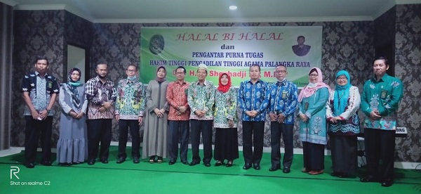 Acara Halal Bihalal dan Pengantar Purna Tugas Hakim Tinggi Pengadilan Tinggi Agama Palangkaraya yang dilangsungkan secara sederhana dengan undangan yang hadir juga terbatas karena dilkaksanakan dalam kondisi pandemik wabah Covid-19. Tambak hadir dalam acara tersebut Wakil Ketua Pengadilan Tinggi Agama Palangkaraya, Sekretaris Pengadilan Tinggi Agama Palangkaraya serta para Ketua Pengadilan Agama se- Kalimantan Tengah antara lain Ibu Ketua Pengadilan Agama Pulang Pisau, Sri Roslinda, S. Ag., M.H., Ketua Pengadilan Agama Kasongan M. Amir Syarifuddin, S.H.I., M.H, Wakil Ketua Pengadilan Agama Palangkaraya Dra. HJ. NORHAYATI, M.H., Ketua Pengadilan Agama Kuala Kapuas yang di wakilkan oleh H. Said Harli, S.Ag, dan perwakilan Ketua pengadilan Agama se- Kalimantan Tengah lainnya.
