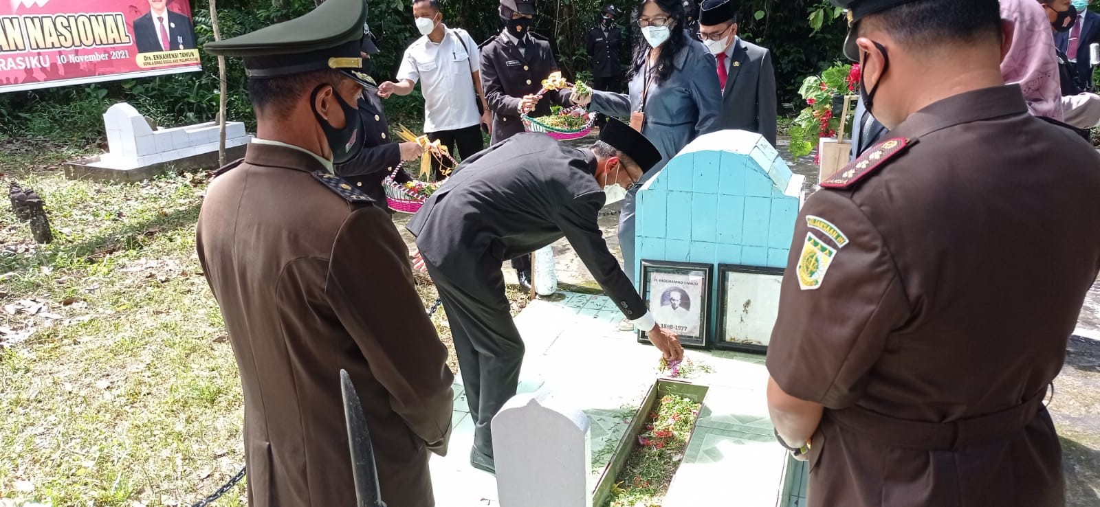 Ketua Pengadilan Agama Pulang Pisau Erpan, S.H., M.H. hadiri Upacara Peringatan Hari Pahlawan di Makam Pahlawan HM Sanusi di Kelurahan Bereng Kabupaten Pulang Pisau yang tetap menjaga protokol kesehatan covid-19, Rabu 10 November 2021. Seperti tahun sebelumnya upacara tersebut sekaligus ziarah ke makam pahlawan yang ada di Kabupaten Pulang Pisau.