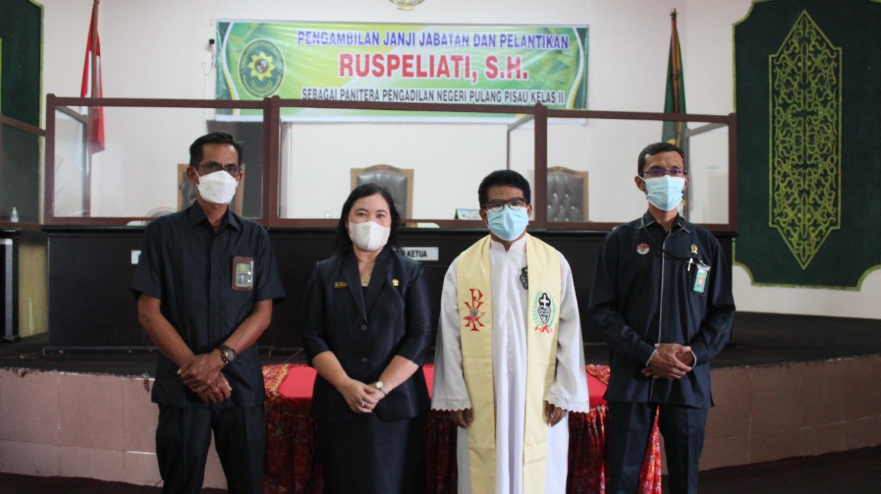 Erpan, S.H., M.H. selaku Ketua Pengadilan Agama Pulang Pisau menjadi saksi pengambilan janji jabatan dan pelantikan Ruspeliati, S.H. sebagai Panitera Pengadilan Negeri Pulang Pisau. Kegiatan tersebut dilaksanakan pukul 11.00 WIB di ruang sidang utama Pengadilan Negeri Pulang Pisau, sebelumnya Ruspeliati, S.H. menjabat sebagai Panitera Muda Hubungan Industrial Pengadilan Negeri Palangka Raya.