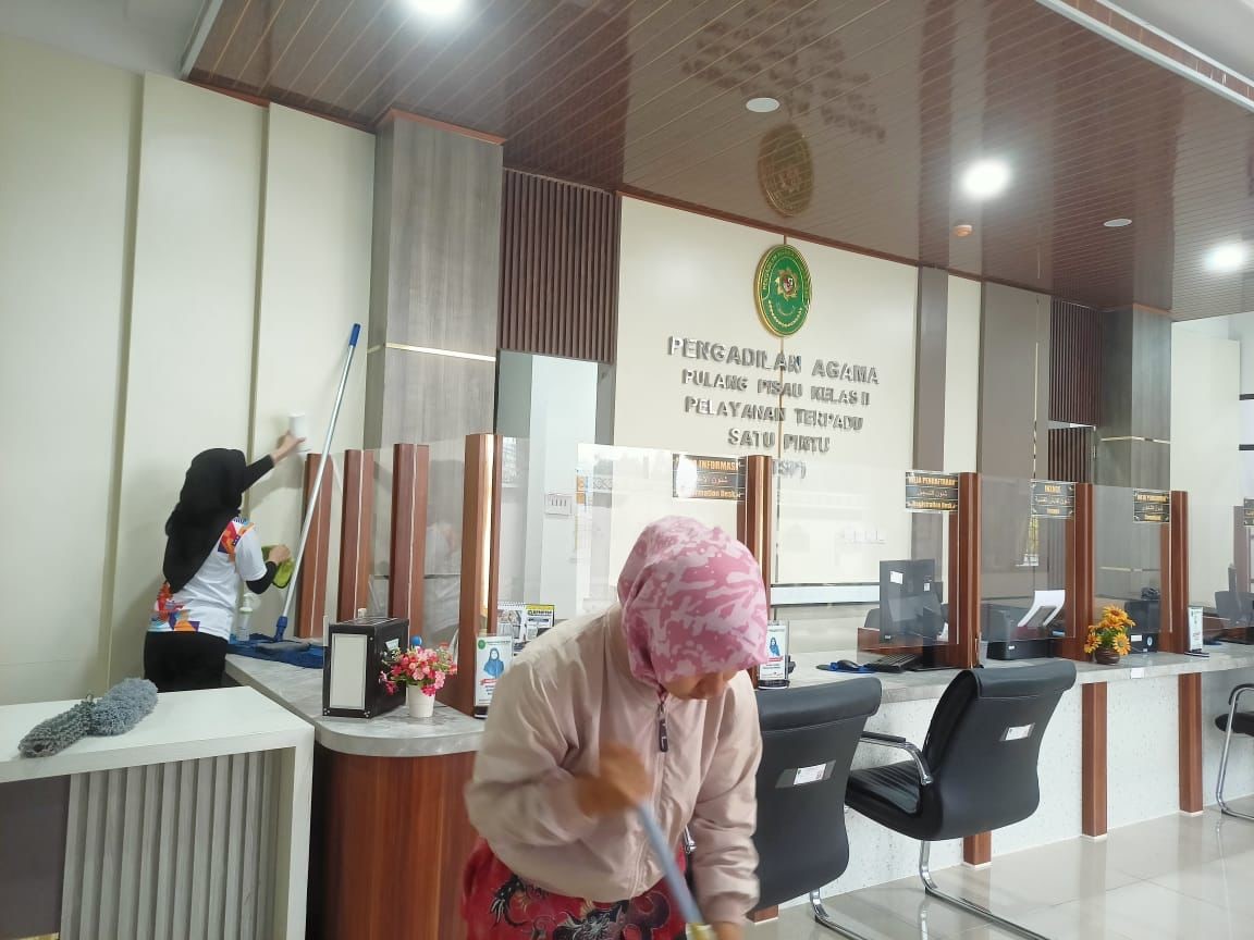 Jum’at (28/02/2025) Pengadilan Agama Pulang Pisau laksanakan Jum’at Bersih dilaksanakan oleh seluruh warga Pengadilan Agama Pulang Pisau dengan penuh semangat. Kegiatan ini selain perihal Pelaksanaan Budaya Jum’at Bersih dan Sehat yang mana telah menjadi rutinitas yang tertuang dalam Program Kerja Satuan Kerja Pengadilan Agama Pulang Pisau.