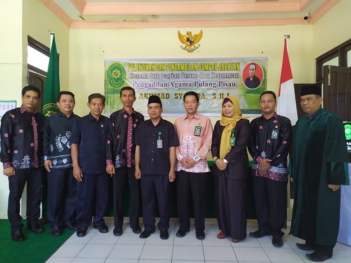 Setelah sebelumnya Kasubag Umum dan keuangan PA Pulang Pisau Ummi Watini A. Md. yang mutasi ke PA Sampit dilantik menjadi Kasubag Perencanaan, Teknologi Informasi dan Pelaporan. Kini tiba saatnya bagi PA Pulang Pisau untuk melantik Kasubag Umum dan Keuangan yang baru.