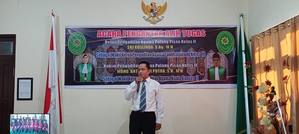 Pengadilan Agama Pulang Pisau mengadakan acara Pengantar alih tugas Ketua Pengadilan Agama Pulang Pisau Sri Roslinda S.Ag.M.H. yang dipromosi menjadi Wakil Ketua Pengadilan Agama Pangkal Pinang Kelas IB. Acara yang dilaksanakan pada hari Jumat (07/08), di ruang sidang PA Pulang Pisau ini berlangsung dengan khidmat dan penuh dengan keharuan meskipun dilaksanakan secara sederhana.