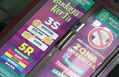 Sri Roslinda, S.Ag., M.H. Wakil Ketua Pengadilan Agama Pulang Pisau, menyampaikan bahwa konsep peradilan yang modern tidak lepas dari sebuah konsep awal yang disuguhkan oleh seluruh jajarannya, sumbangsih saran dan pemikiran dari seluruh pegawai memegang peranan penting terwujudnya Ruang PTSP Pengadilan Agama Pulang Pisau saat ini. "Fasilitas gedung yang tersedia saat ini boleh kecil... tapi cara kita semua untuk berpikir dan berinovasi tidak boleh terkekang oleh kecilnya ruang yang tersedia. Berusahalah untuk bergerak bebas dan berpikir luas untuk sebuah cita-cita yang tinggi demi lembaga ini" pungkas beliau dalam amanat apel Senin pagi (08/04) yang lalu.