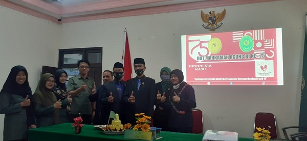Keluarga besar PA Pulang Pisau pada Rabu, 19/08/2020 mengucapkan Selamat Hari Ulang Tahun Mahkamah Agung Republik Indonesia Ke - 75 yang dipimpin oleh Ketua PA Pulang Pisau Bapak Erpan, S.H., M.H. Ucapan ini diberikan setelah mengikuti upacara Peringatan HUT Mahkamah Agung Republik Indonesia Ke - 75 secara virtual yang dilangsungkan di Gedung Mahkamah Agung RI Jalan Medan Merdeka Jakarta dengan mengambil tema “Optimalisasi Peradilan Modern Berkelanjutan Merespon Pandemi Covid 19”.
