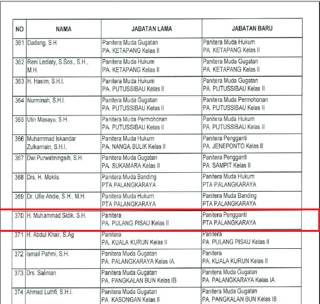 Panitera PA Pulang Pisau mendapat promosi menjadi Panitera Pengganti di PTA Palangka Raya