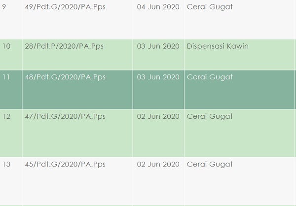 Pada bulan Januari hingga bulan Mei tercatat ada 42 perkara yang masuk di Pengadilan Agama pulang Pisau. Kemudian hingga bulan Juni ini menjadi sebanyak 58 perkara telah masuk padahal baru beberapa hari setelah Lebaran. Dari data tersebut, artinya angka perceraian meningkat drastis dibandingkan normalnya pada bulan sebelum lebaran Idul Fitri.