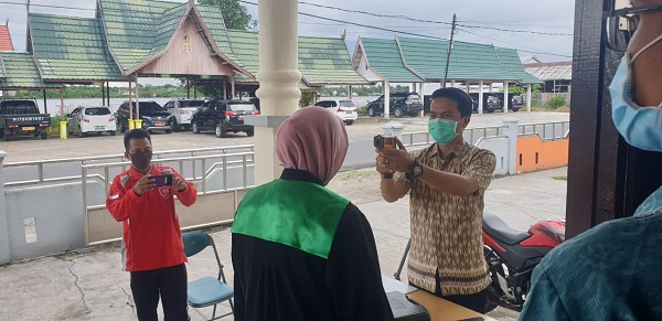 Pada giat ini dalam rangka mencegah penyebaran virus Covid-19, PA Pulang Pisau berkerjasama dengan pihak Dinas Kesehatan Kabupaten Pulang Pisau melakukan pengecekan suhu tubuh dan pemberian Hand Sanitizer kepada para tamu undangan yang datang sebelum memasuki PA Pulang Pisau. Ini sebagai wujud kepedulian PA Pulang Pisau dalam membantu pencegahan virus Covid-19.