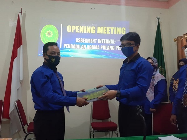 Rabu, 30 September 2020, pukul 10.00 WIB. Pengadilan Agama Pulang Pisau mengadakan acara Opening Meeting Assesment Internal Akreditasi Penjaminan Mutu (APM). Bertempat di ruang sidang Pengadilan Agama Pulang Pisau, acara Opening Meeting Assesment Internal dilaksanakan dengan memperhatikan prusedur kesehatan Covid-19 yaitu dilangsungkan secara virtual melalui Aplikasi Zoom, dengan di ikuti oleh seluruh aparatur Pengadilan Agama Pulang Pisau beserta jajaranya.