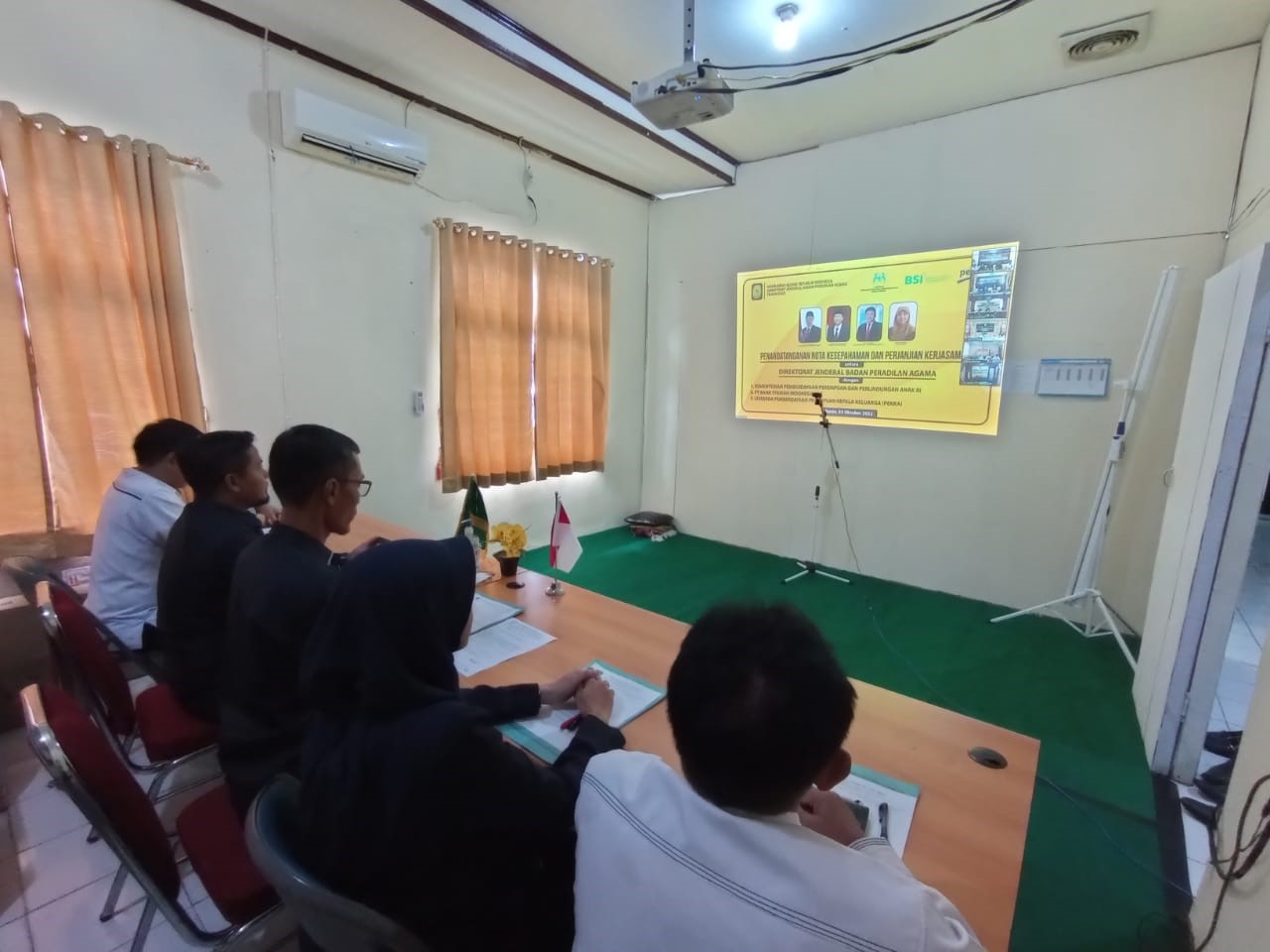 Pada hari Senin, 3 Oktober 2022 pukul 09.00 WIB bertempat di Media Center Pengadilan Agama Pulang Pisau. Pimpinan Pengadilan Agama Pulang Pisau mengikuti acara Penandatanganan Nota Kesepahaman oleh Direktorat Jenderal Badan Peradilan Agama Mahkamah Agung Republik Indonesia dengan Kementerian Pemberdayaan Perempuan dan Perlindungan Anak Republik Indonesia melalui virtual. Berdasarkan surat nomor 4021/DjA.1/HM.00/9/2022 mengenai Undangan Mengikuti Acara Penandatanganan Nota Kesepahaman, tertanggal 28 September 2022.