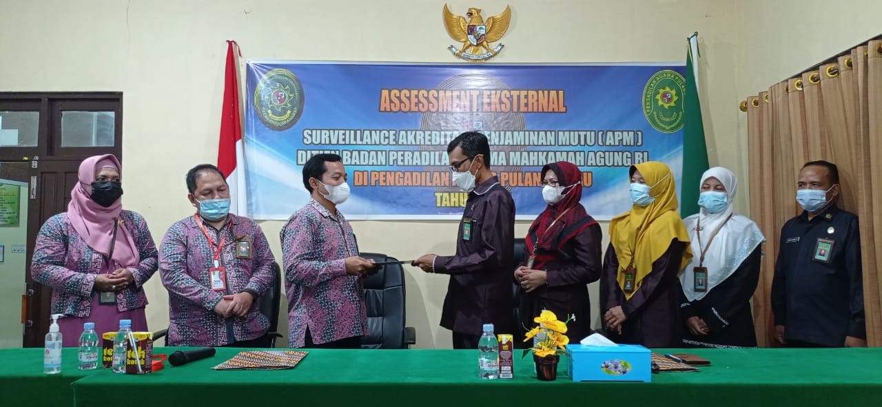 Bertempat di Ruang Sidang Pengadilan Agama Pulang Pisau, Tim Asessor Eksternal Badan Peradilan Agama menyerahkan Kontrak Kinerja Permintaan Perbaikan Hasil Observasi Implementasi Akreditasi Penjaminan Mutu Badan Peradilan Agama Tahun 2021. Tim Asessor Eksternal Badan Peradilan Agama dan Pengadilan Tinggi Agama Palangka Raya tersebut terdiri dari Sofyansaleh Efriyono, S.Pd.I, Dr. Ufie Ahdie, S.H., M.H. dan Rika Yunita Pratiwi, S.T. Tim asessor telah datang pada hari Rabu, 01 Desember 2021 untuk melaksanakan kegiatan observasi implementasi akreditasi penjaminan mutu Badan Peradilan Agama Tahun 2021. Dalam kesempatan tersebut tim diwakili oleh Sofyansaleh Efriyono, S.Pd.I. menyerahkan kontrak kinerja permintaan perbaikan kepada Erpan, S.H., M.H selaku Ketua Pengadilan Agama Pulang Pisau.