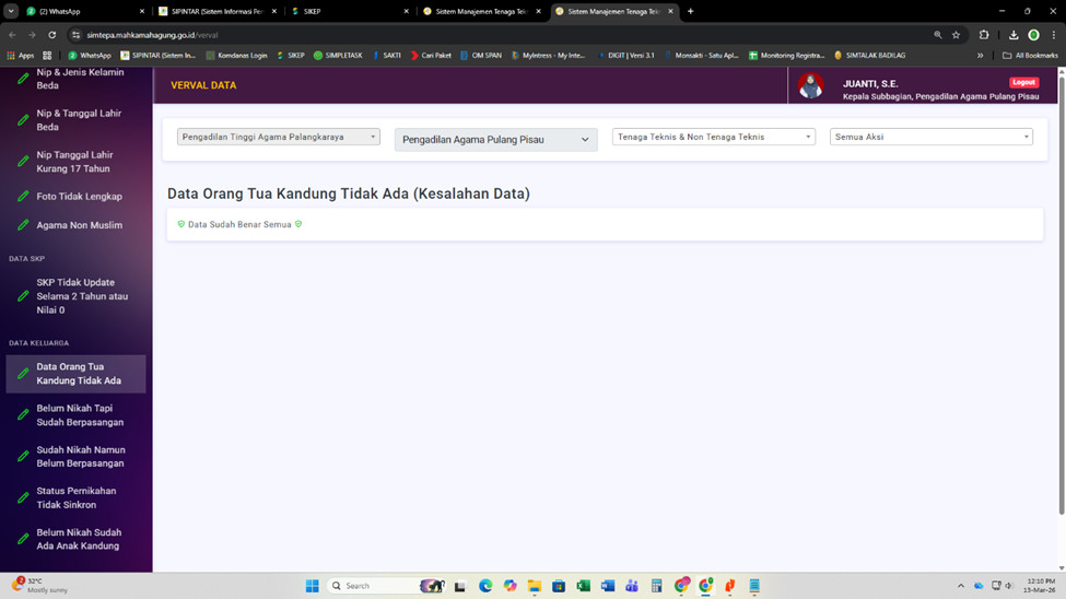 Pulang Pisau – Kepala Subbagian Kepegawaian dan Organisasi Tata Laksana (Ortala) Pengadilan Agama Pulang Pisau, Juanti, S.E. mengikuti kegiatan E-learning Manajemen Aparatur Sipil Negara (ASN) dengan topik Pangkat PNS selama 2 Jam Pelajaran (JP) pada Jumat (13/03/2026).