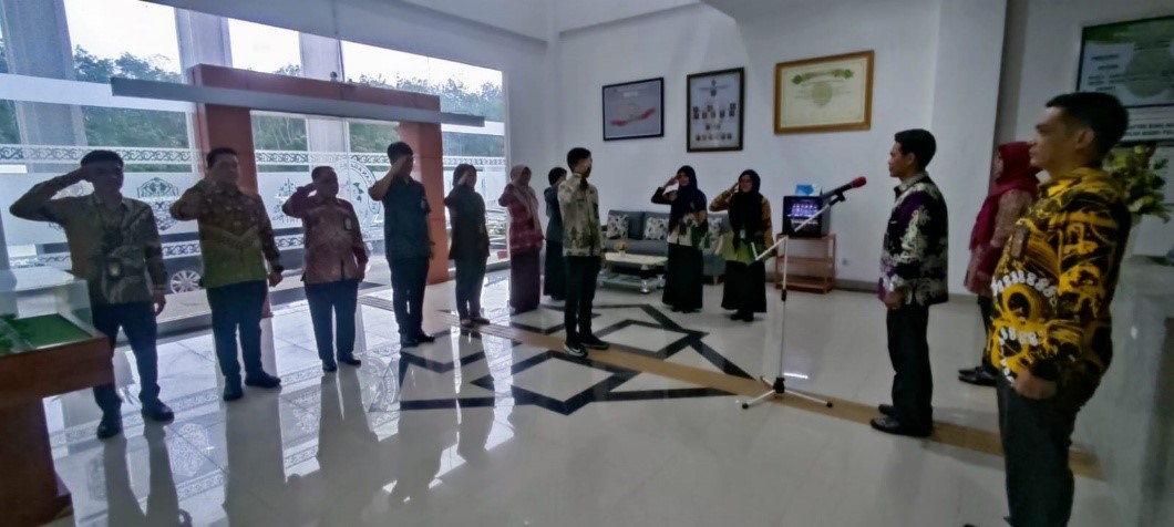 Pekan ini ditutup dengan apel Jumat sore pada pukul 16.00 WIB bertempat di ruang lobby kantor Pengadilan Agama Pulang Pisau. Apel tersebut diikuti oleh seluruh pegawai mulai dari Ketua, Hakim, pejabat fungsional, pejabat struktural, pelaksana dan PPNPN PA Pulang Pisau. Pembina apel Jumat sore dipimpin oleh Ketua Pengadilan Agama Pulang Pisau yang mulia Bapak Wiryawan Arif, S.H.I.,M.H. dan yang menjadi komandan apel adalah Vicky Noval Perdana Satria, S.H.