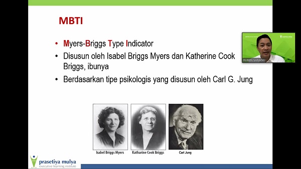 Pada pelatihan ini dijelaskan bahwa ada 16 tipe kepribadian seseorang yaitu ISTJ, ISFJ, INFJ, INTJ, ISTP, ISFP, INFP, INTP, ESTP, ESFP, ENFP, ENTP, ESTJ, ESFJ, ENFJ dan ENTJ. Adapun I (Introversion) ciri-cirinya adalah senang menyendiri atau interaksi satu lawan satu, senang bekerja sendiri, berpikir baru bertindak, terlihat tenang, fokus pada satu kegiatan, perenung, pikiran di dalam hati dan suka berefleksi atau memikirkan.