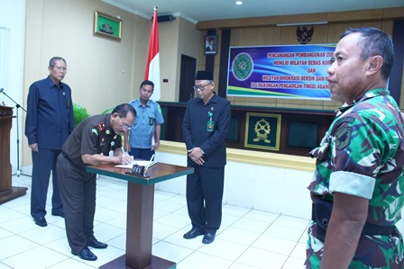 Dalam acara ini juga dibacakan Ikrar bersama yang dibacakan oleh Ketua Pengadilan Tinggi Agama Kalimantan Tengah dan diikuti oleh seluruh Pegawai di lingkungan Pengadilan Tinggi Agama Kalimantan Tengah dan dilanjutkan Penandatanganan Pencanangan Pembangunan Zona Integritas Menuju Wilayah Bebas Korupsi dan Wilayah Bersih Melayani oleh Ketua Pengadilan Tinggi Agama Kalimantan Tengah dan ditanda tangani oleh saksi dari Kepala Badan Kepegawaian Provinsi Kalimantan Tengah M. Katma F Dirun, SE, MM yang mewakili Gubernur Kalimantan Tengah, Kepala Kejaksaan Tinggi Kalimantan Tengah Adi Sutanto, SH MH, Kepala Kepolisian Daerah Kalimantan Tengah diwakili Kompol Ponco Irwanto, SE, Komandan Korem 102 Panju Panjung diwakili Letkol Toni Torani, Ketua Majelis Ulama Indonesia Kalteng H. Rafi’i, SH., MH, Kepala Kemenag Provinsi Kalteng Drs. H. Masrawan, M.Ag dan Wakil Ketua PT Kalimantan Tengah H. Mohammad Idroes, SH., M.Hum.