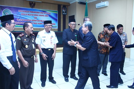 Dalam rangka mengupayakan Pembangunan Wilayah Bebas dari Korupsi (WBK) dan Wilayah Birokrasi Bersih dan Melayani (WBBM) sesuai Peraturan Menteri Pendayagunaan Aparatur Negara Dan Reformasi Birokrasi Nomor 52 Tahun 2014 dan Keputusan Ketua Mahkamah Agung RI Nomor 194A/KMA/SK/XI/2014 Tentang Pembentukan Tim Pembangunan Zona Integritas Mahkamah Agung RI di lingkungan Pengadilan Tinggi Agama Kalimantan Tengah digelar Deklarasi Pencanangan Pembangunan Zona Integritas oleh Drs. H. Sarif Usman, SH., MH selaku Ketua PTA Kalimantan Tengah.